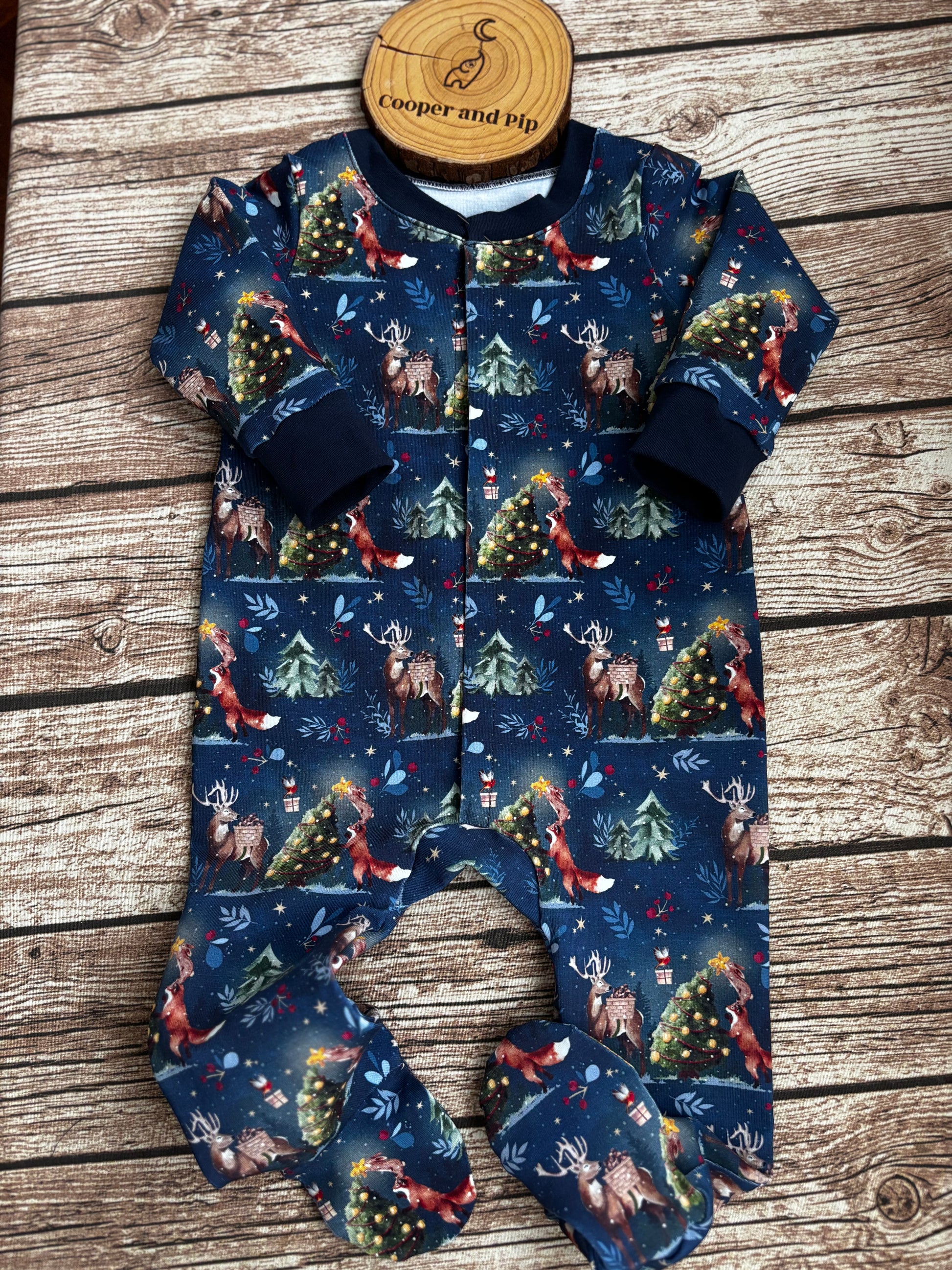 Our brand new baby grows feature long sleeves with cuffs and cuffed legs or footed these baby grows fasten down the front with snaps. Pair with our double top knot hats and a bib for an adorable baby outfit or gift set.